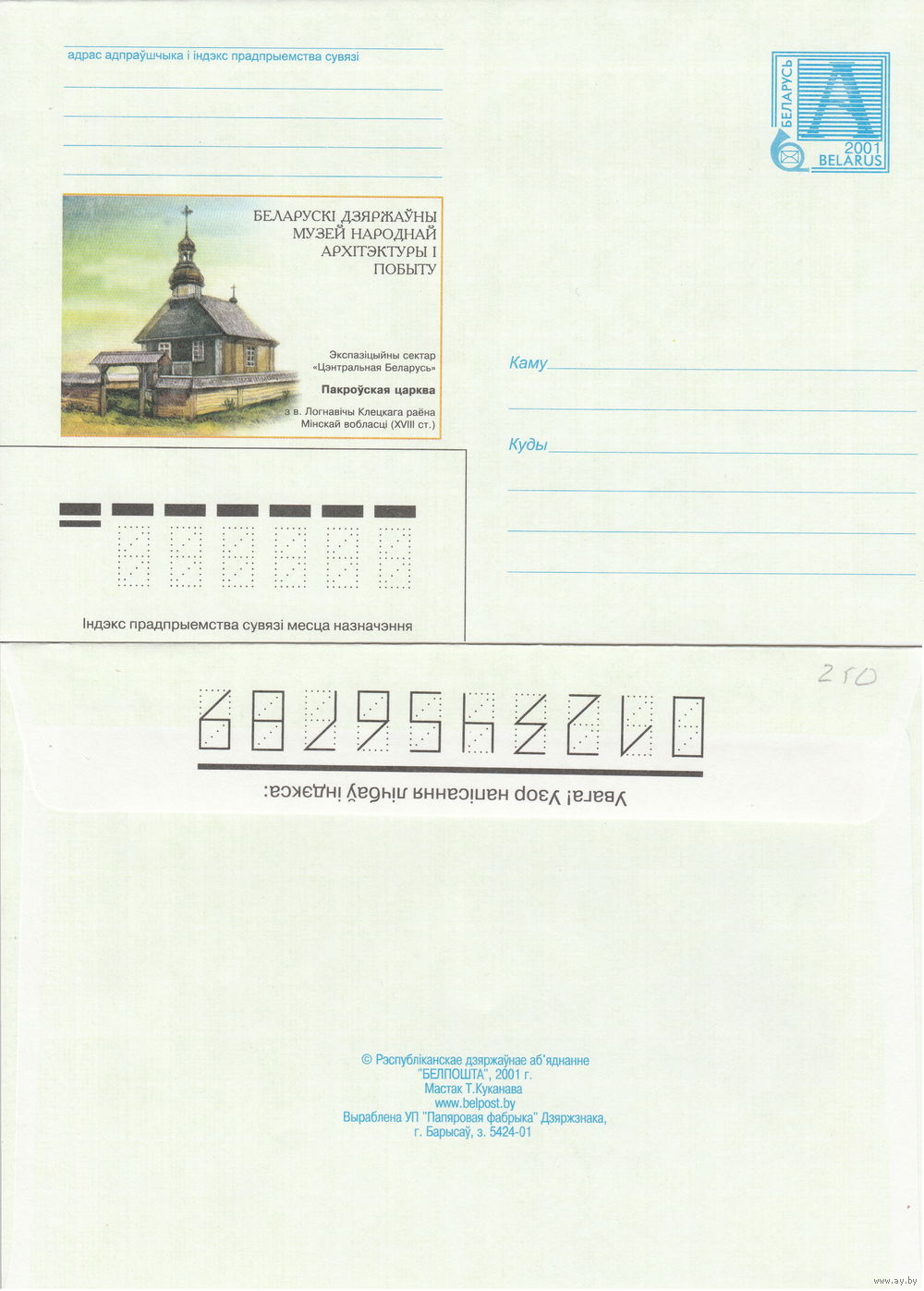 Беларусь 2001 Беларускi дзяржаўны музей народнай архiтэктуры i побыту. Экспазiцыйны сектар Цэнтральная Беларусь. Пакроўская царква з в. Логнавiчы Покровская церковь из д. Логновичи (к4)