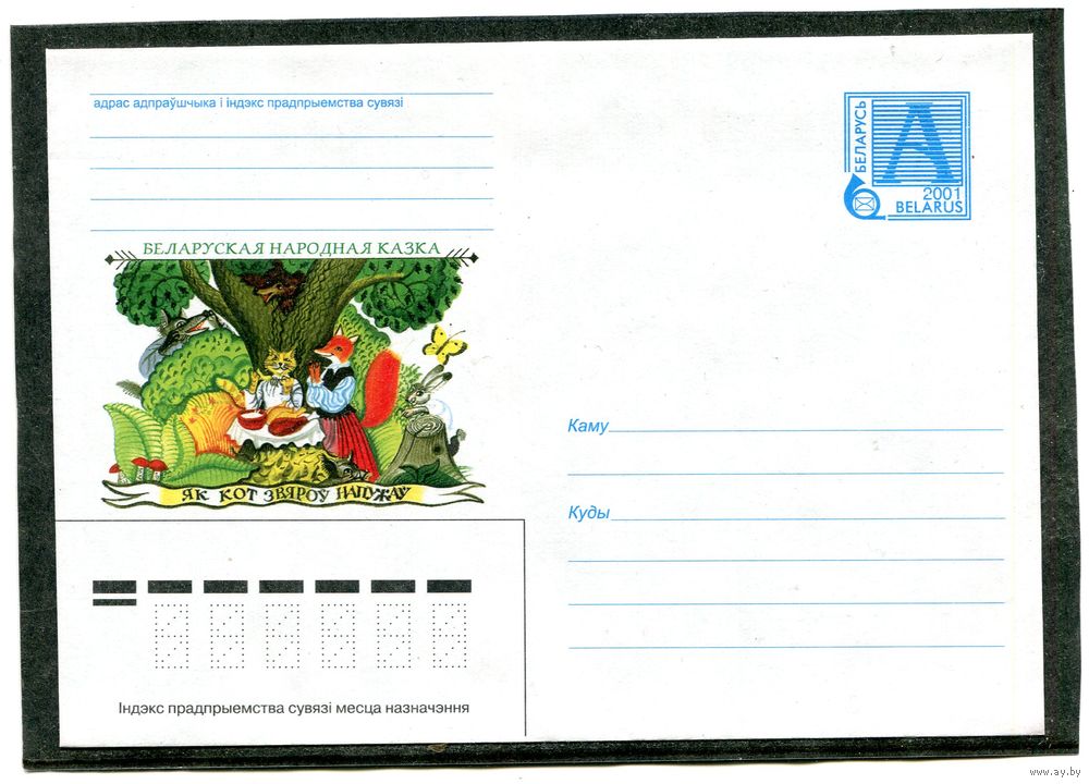 Беларусь 2001. ХМК. Конверт. Сказки. Как кот зверей напугал