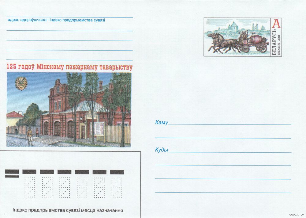 Беларусь 2001 ХМК с ОМ 125 лет Минскому пожарному обществу (к5)