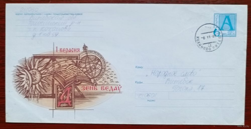 Беларусь 2001 конверт День знаний /прошедший почту /