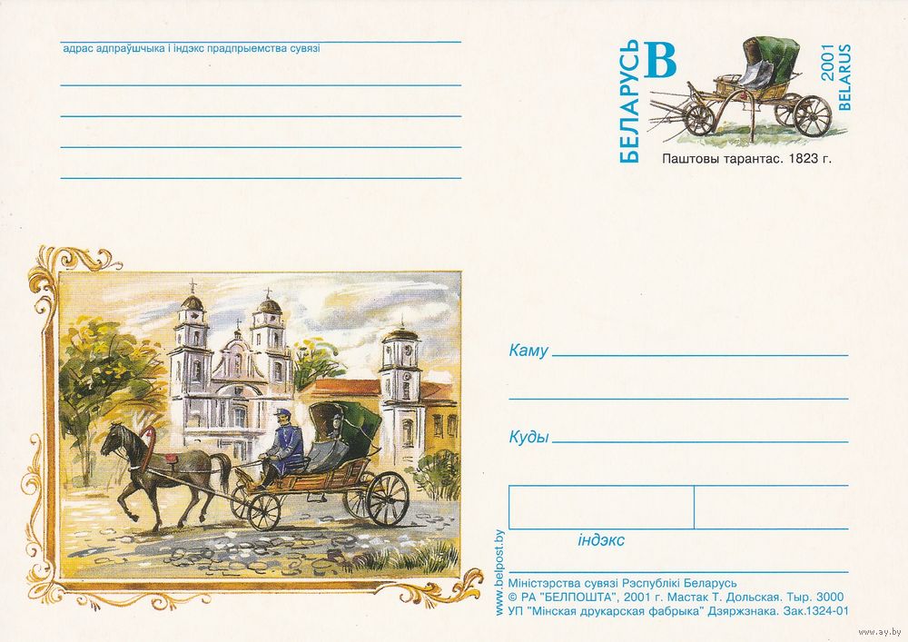 Беларусь 2001 ПК с ОМ Почтовый тарантас (алб)