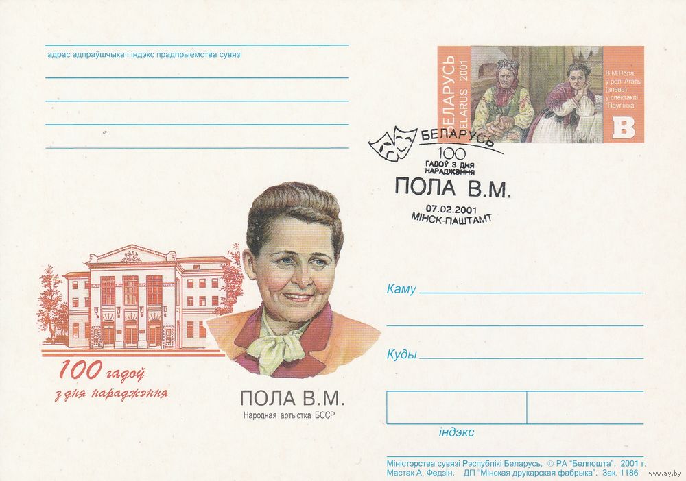 Беларусь 2001 ПК с ОМ со СГ 100 лет со дня рождения Поло В.М. (к5)