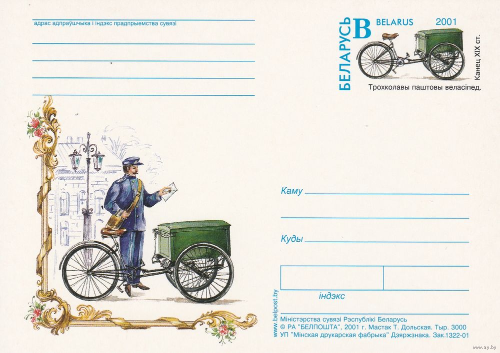 Беларусь 2001 ПК с ОМ Трехколесный почтовый велосипед (алб)