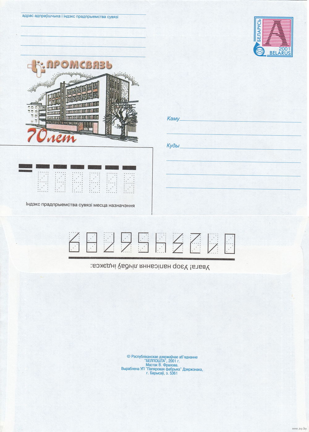 Беларусь 2001 Промсвязь. 70 лет (к4)