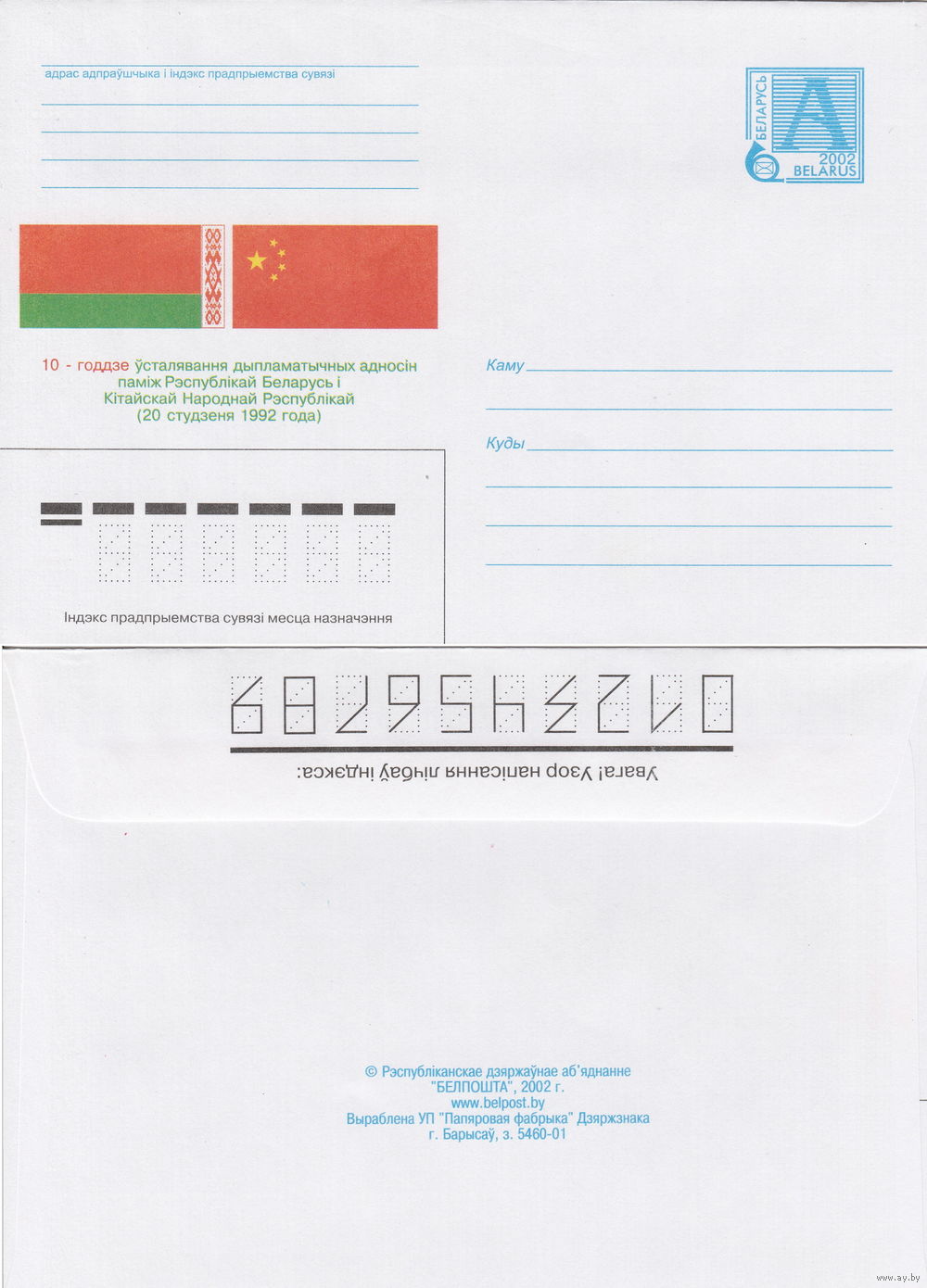 Беларусь 2002 10-летие установления дипломатических отношений между Республикой Беларусь и Китайской Народной Республикой (к4)