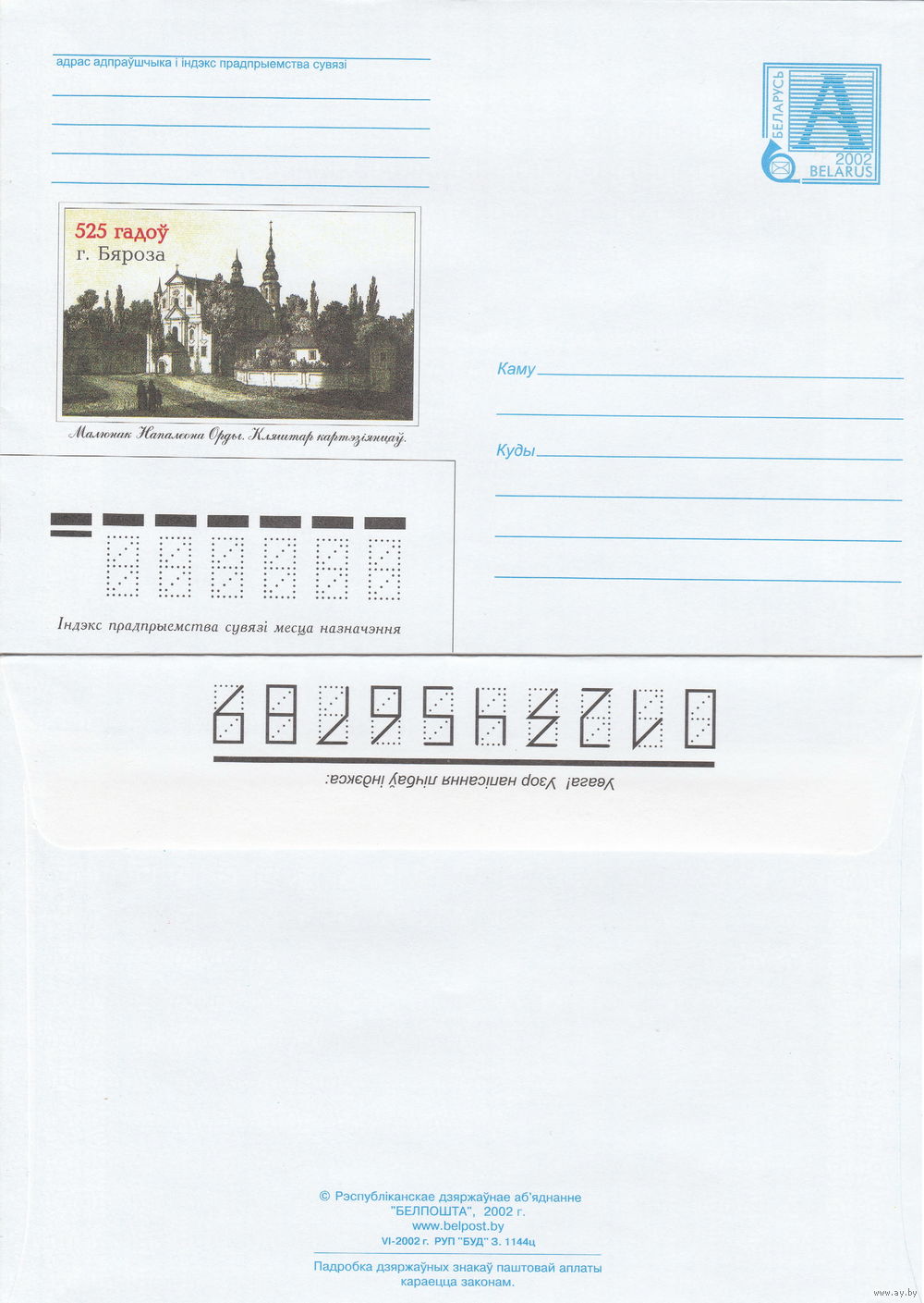 Беларусь 2002 525 лет. г. Береза. Рисунок Наполеона Орды. Монастырь картезианцев (к4)