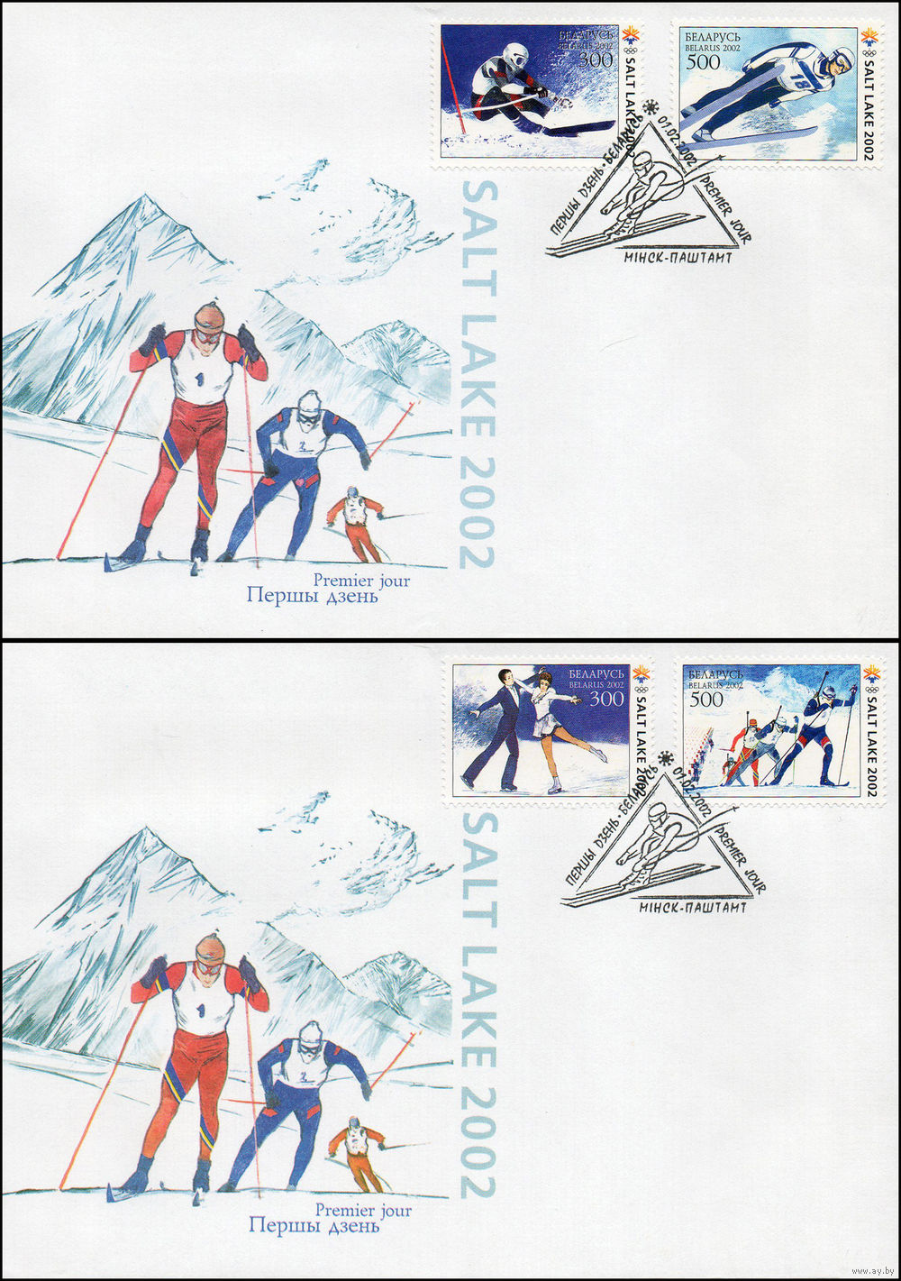 Беларусь 2002 год Конверты первого дня XIX зимние Олимпийские игры в Солт-Лейк-Сити (США).