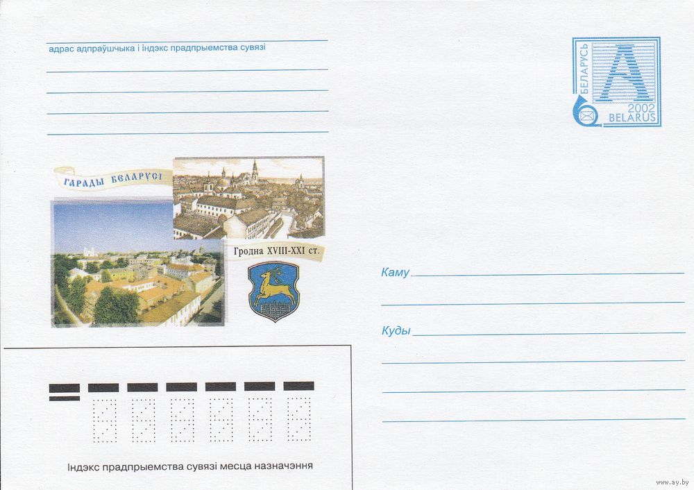 Беларусь 2002 Города Беларуси. Гродно XVIII-XXI в. панорама старого и нового города, герб города (к4а)