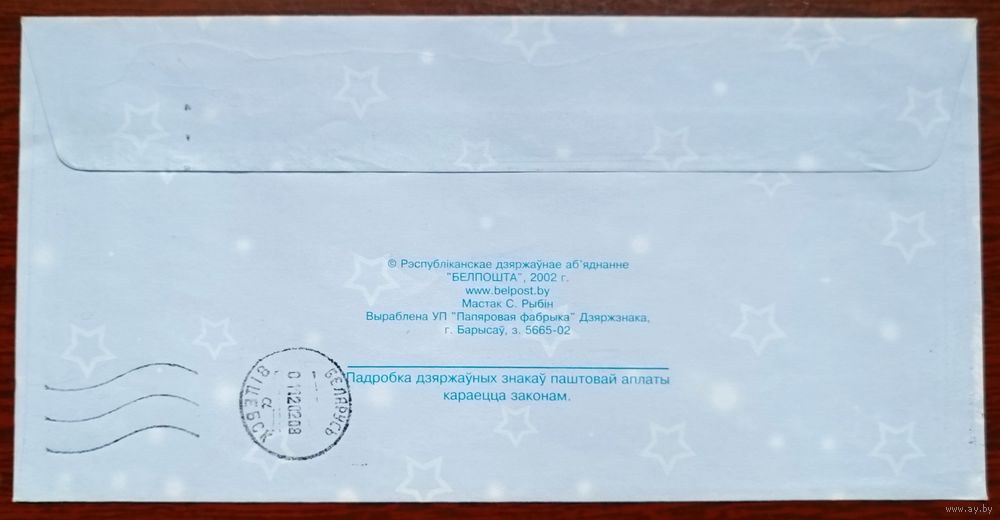 Беларусь 2002 конверт С Новым годом ! /прошедший почту /