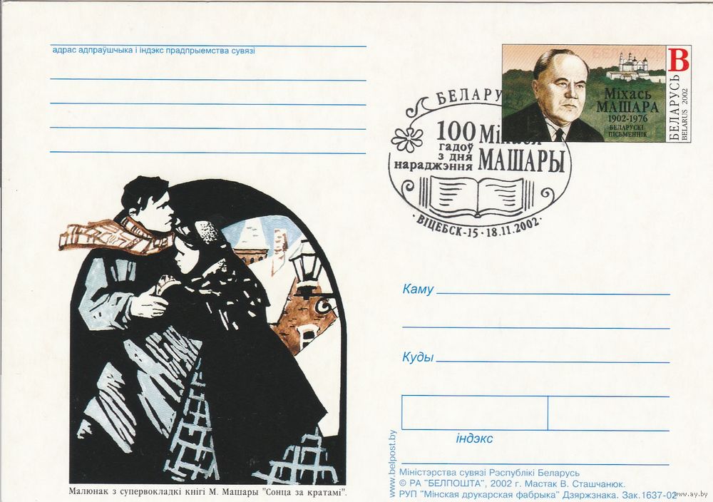 Беларусь 2002 ПК с ОМ со СГ 100 лет со дня рождения Машары М. (к5)