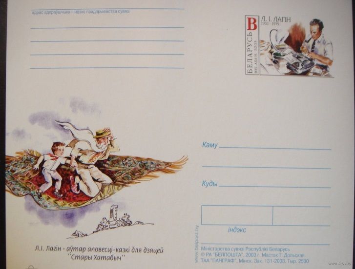 Беларусь. 2003 г ПК с ОМ Лагин, писатель. Старик Хоттабыч.