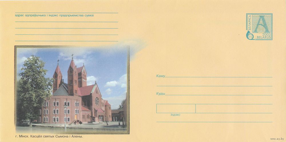 Беларусь 2003 ХМК Минск. Костел святых Симона и Елены (с листом писчей бумаги) (к1)