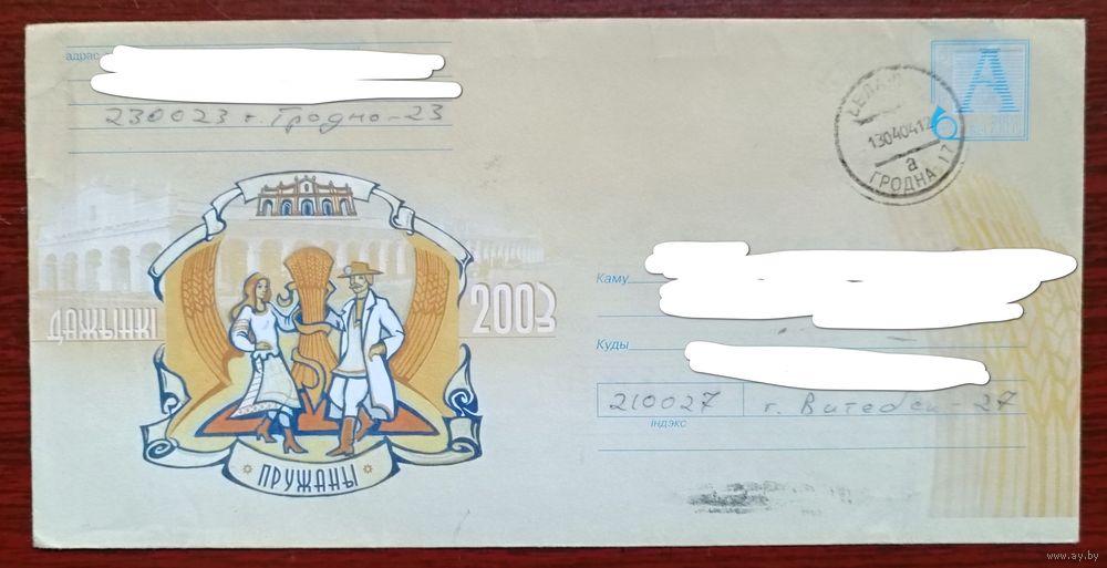 Беларусь 2003 конверт Пружаны дожинки /прошедший почту /