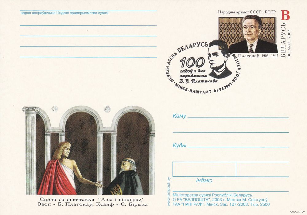 Беларусь 2003 ПК с ОМ со СГ Платонов Б.В. (алб)