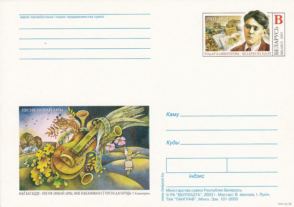 Беларусь 2003 ПК с ОМ Тодор Кляшторный (алб)