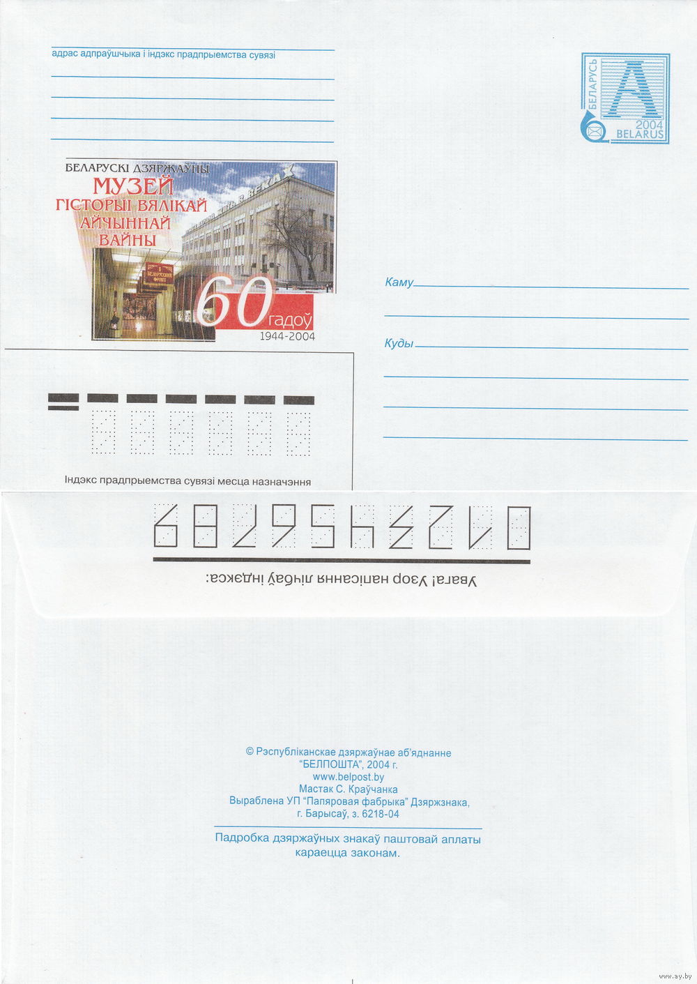 Беларусь 2004 Белорусский государственный музей истории Великой Отечественной войны. 60 лет. 1944-2004 (к4)