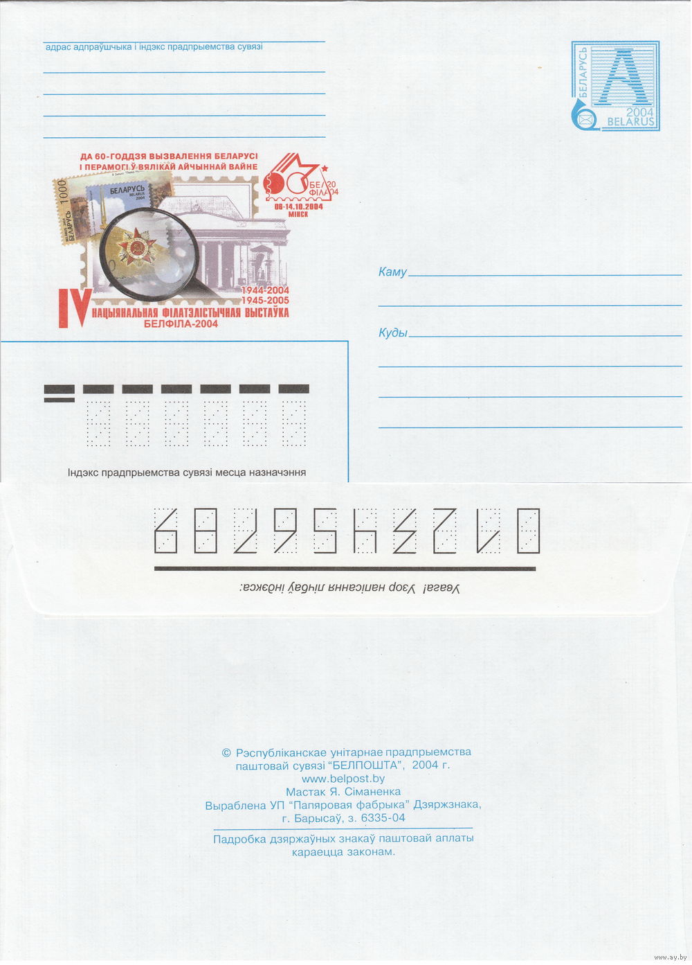 Беларусь 2004 К 60-летию освобождения Беларуси и Победы в Великой Отечественной войне. 1944-2004. 1945-2005. IV Национальная филателистическая выставка Белфила-2004 (к4)