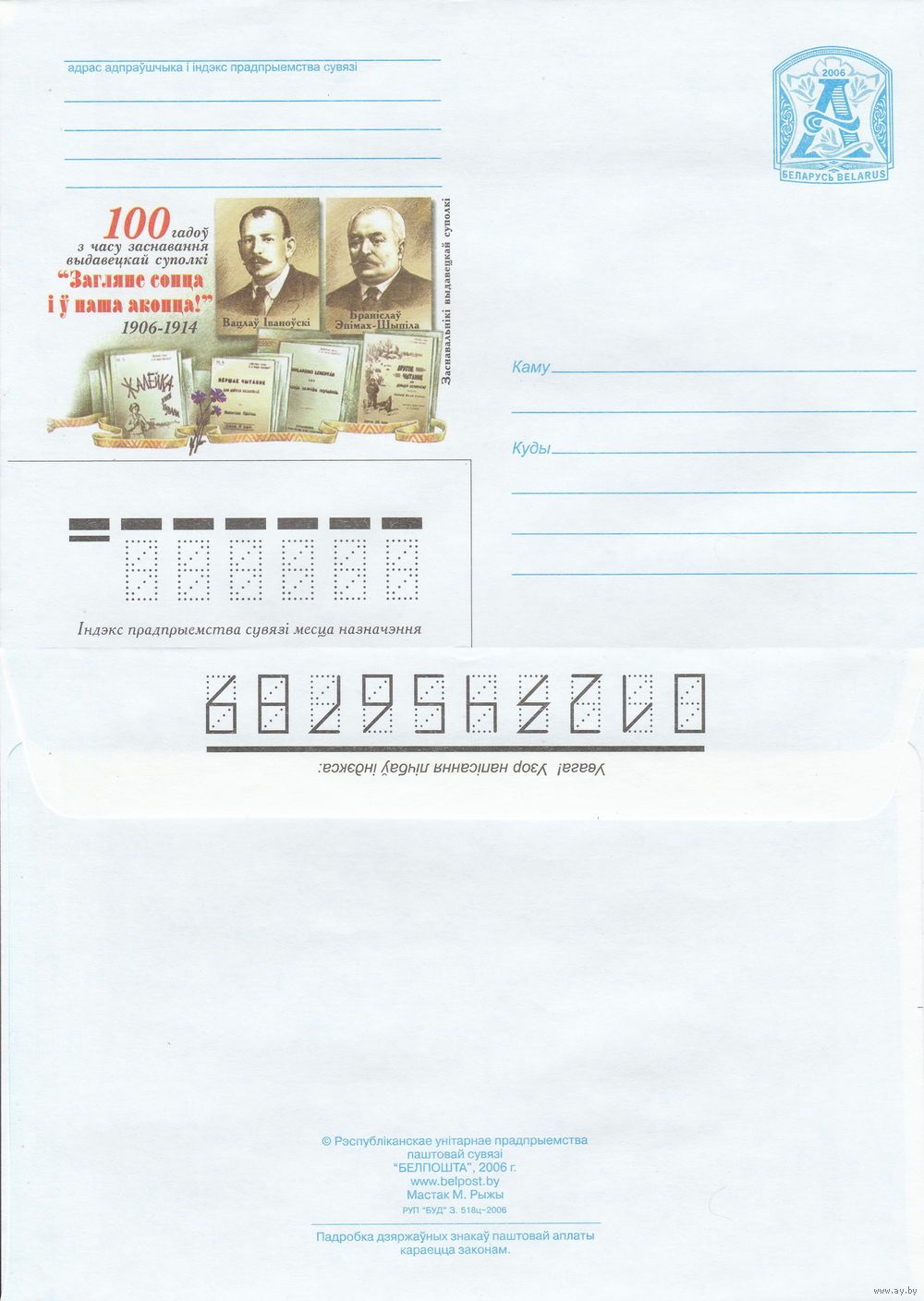 Беларусь 2006 100 лет со времени основания издательского сообщества Загляне сонца і ў наша аконца!. 1906-1914. Вацлав Ивановский. Бронислав Эпимах-Шипила. Основатели издательского сообщества (к4)