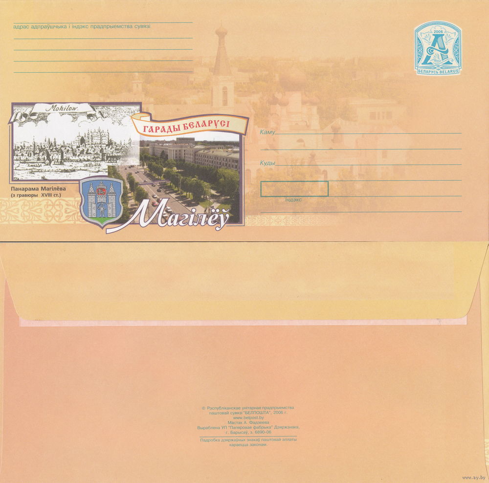 Беларусь 2006 Города Беларуси. Могилев. Панорама Могилёва (с гравюры ХVIII ст.) (к4)