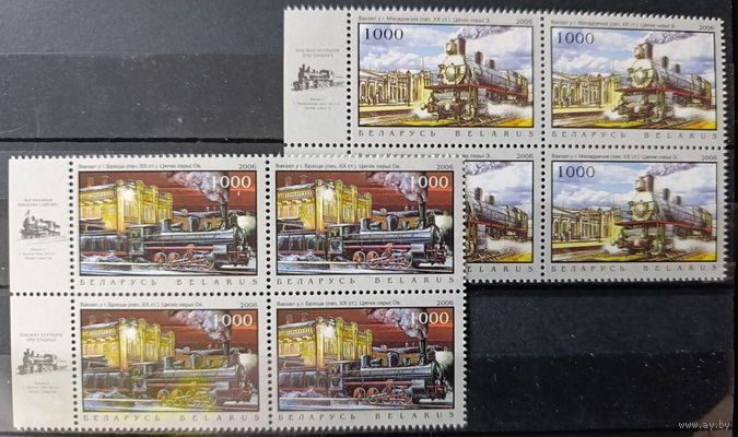 Беларусь 2006 Паровозы и станции (квартблоки)