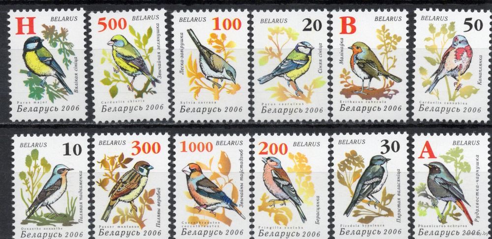 Беларусь 2006. Стандарт.Птицы сада. Бумага мелованная. 12 марок 640-651 (355)