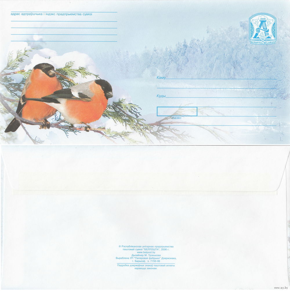Беларусь 2006 Времена года. Зима. Два снегиря на ветке (к4)