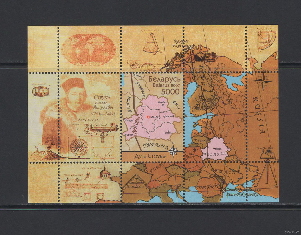 Беларусь 2007 Блок коллекционных марок "Памятник Всемирного наследия."Геодезическая Дуга Струве"