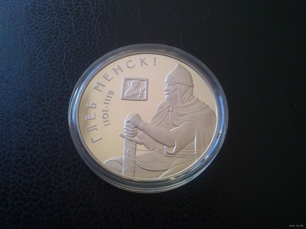 Беларусь 2007 г.Номинал - 1 руб. Глеб Менскi (1101-1119).Монета идеальная,на капсуле имеются микроцарапины.