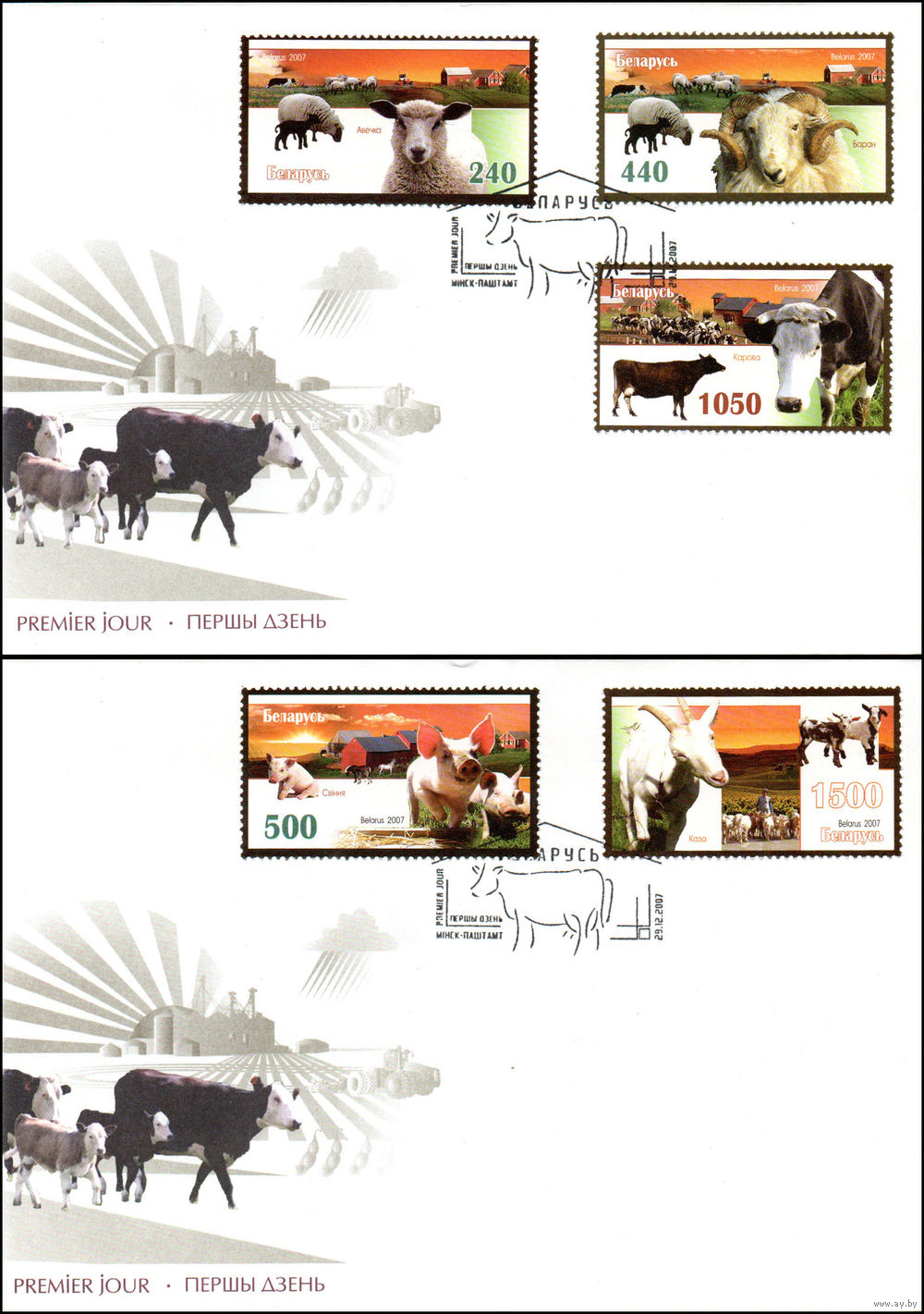 Беларусь 2007 год 2 конверта первого дня Сельскохозяйственные животные. Домашний скот