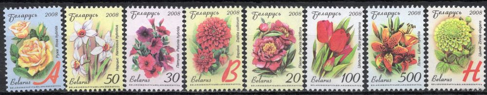 Беларусь 2008. Стандарт. Садовые цветы. Бумага офсетная. 8 марок 729-36 (426)