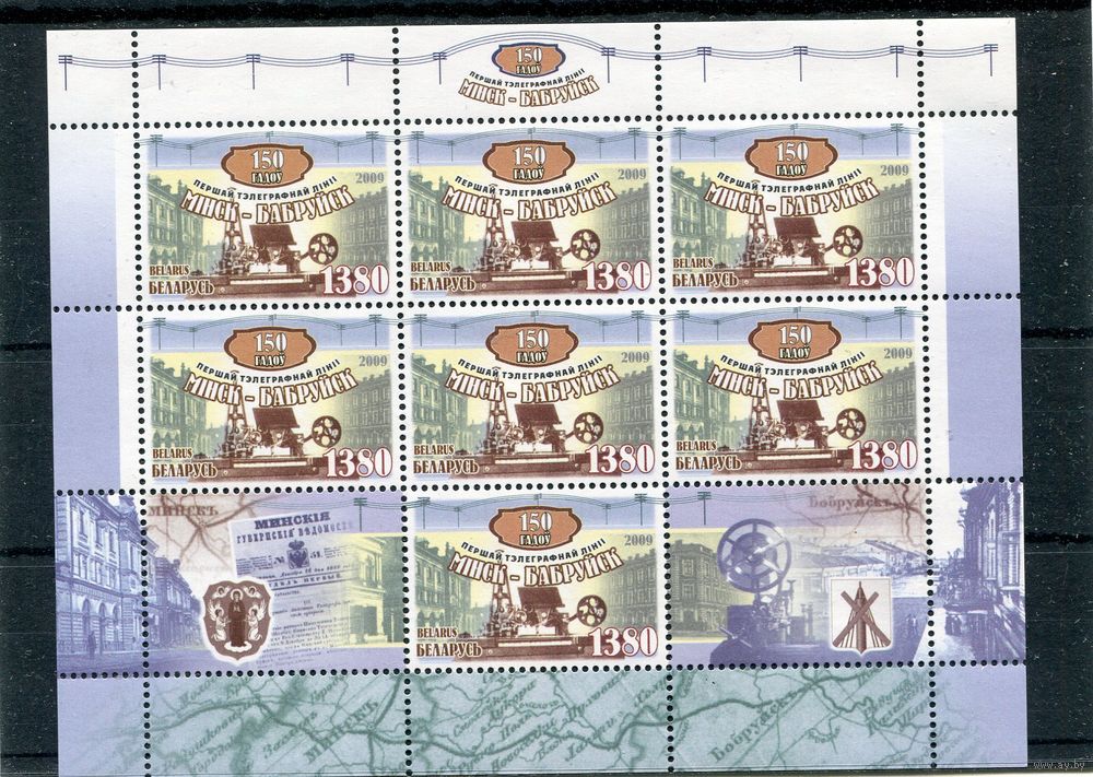 Беларусь 2009. 150 лет первой телеграфной линии Минск - Бобруйск. Малый лист