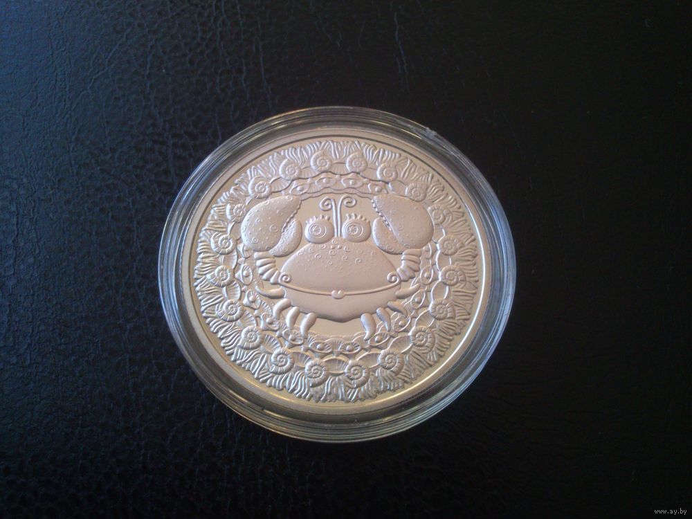 Беларусь 2009 г.Номинал - 1 руб. Знаки зодиака.Рак.Монета идеальная.на капсуле имеются микроцарапины.Обмен.