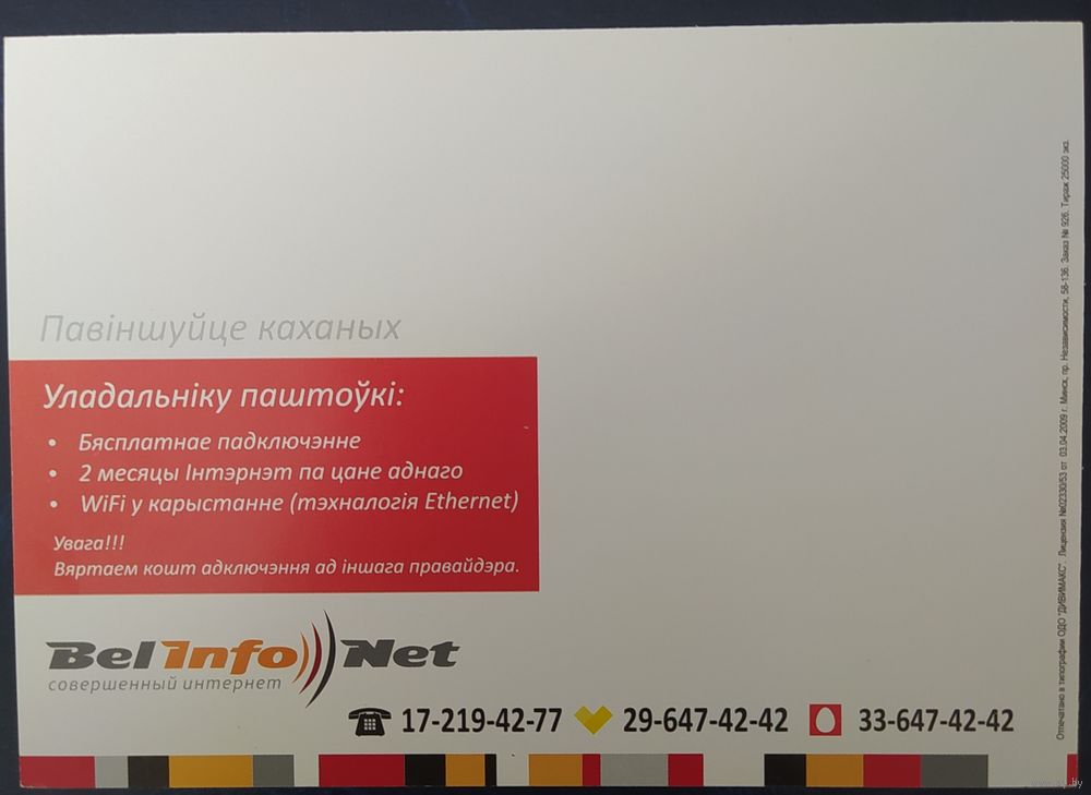 Беларусь 2009 открытка С днем Святого Валентина, рекламная.