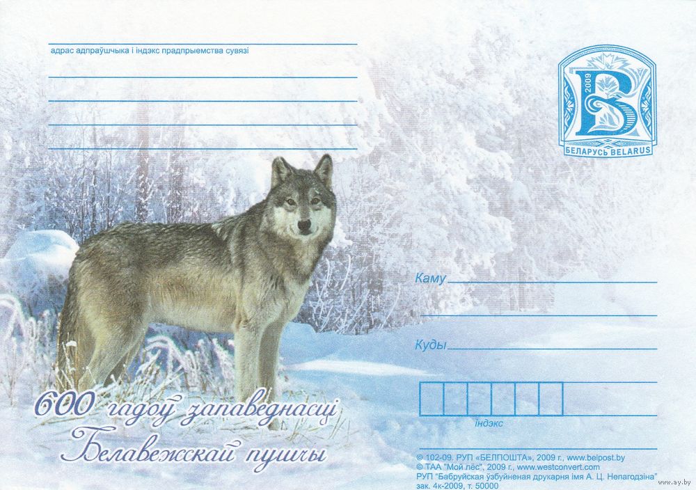 Беларусь 2009 ПК 600 лет заповедности Беловежской пущи Волк (к5)