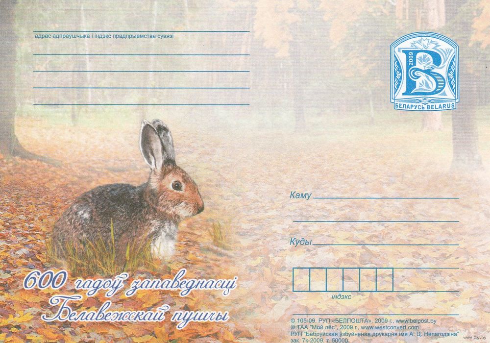 Беларусь 2009 ПК 600 лет заповедности Беловежской пущи Заяц (к5)