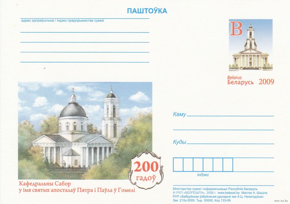 Беларусь 2009 ПК с ОМ 200 лет Кафедральному Собору во имя святых апостолов Петра и Павла в Гомеле (алб)