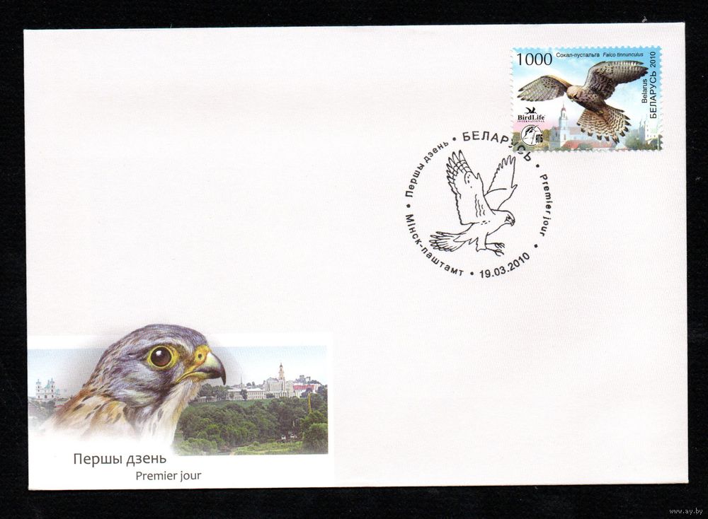 Беларусь 2010 год Конверт первого дня Птица года. Обыкновенная пустельга