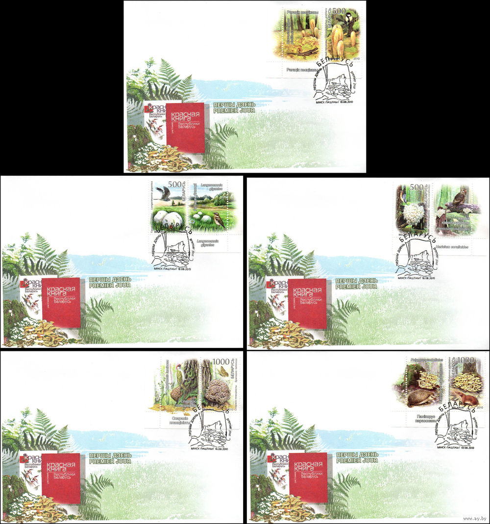 Беларусь 2010 год Конверты первого дня Красная книга Республики Беларусь. Грибы.