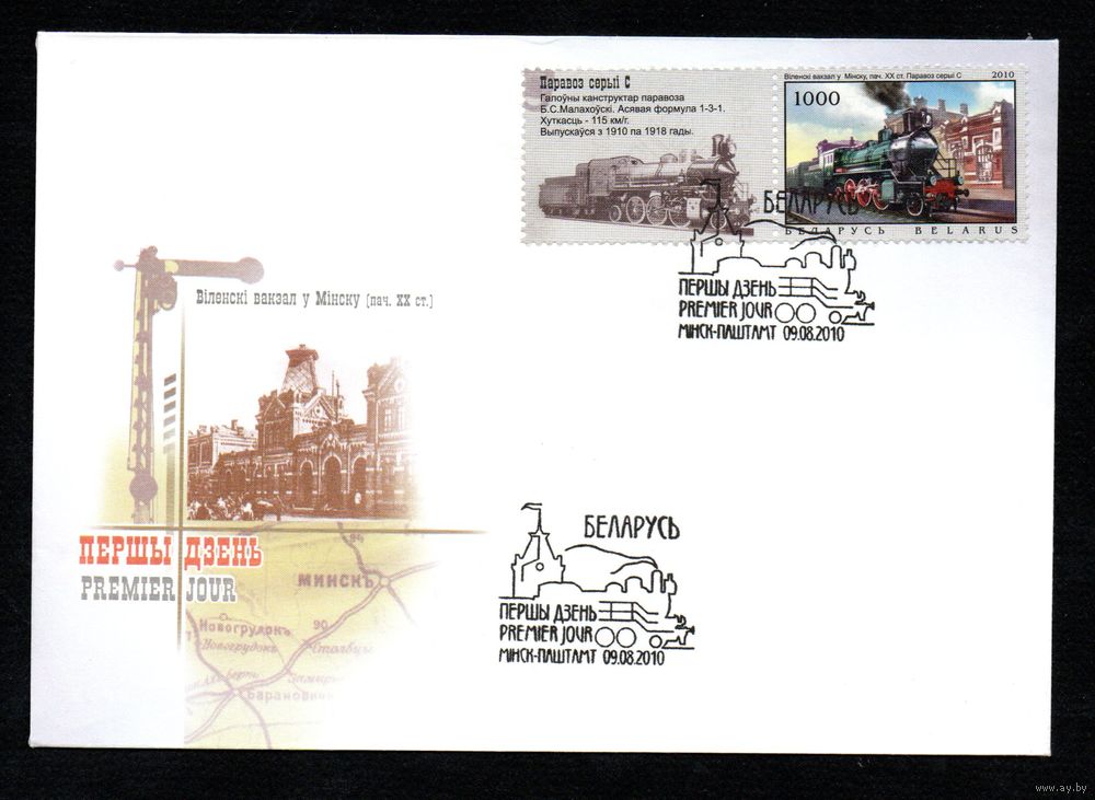 Беларусь 2010 год Конверты первого дня Паровозы и железнодорожные станции (Минск)