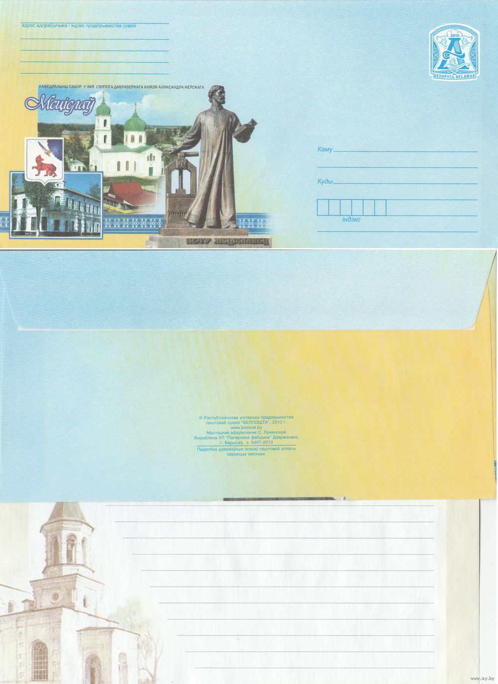 Беларусь 2010 Мстиславль. Кафедральный собор во имя Святого Доброверного князя Александра Невского собор, герб города, памятник Петру Мстиславцу (с бумагой) (к4)
