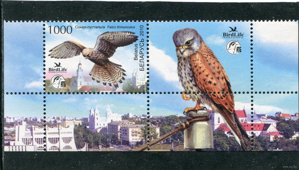 Беларусь 2010. Птица года. Сокол-пустальга. Марка с купоном