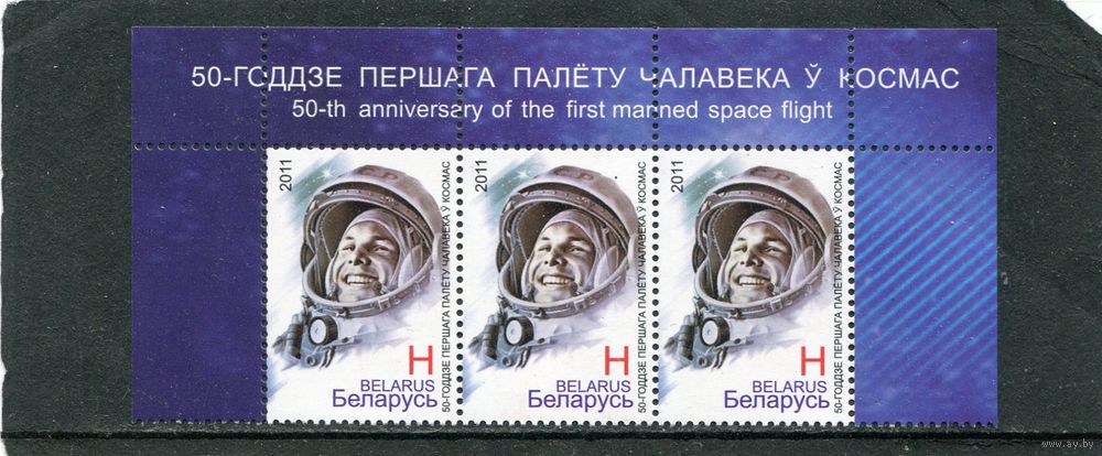 Беларусь 2011. 50 лет первого полета человека в космос. Ю. Гагарин. Верхняя сцепка листа