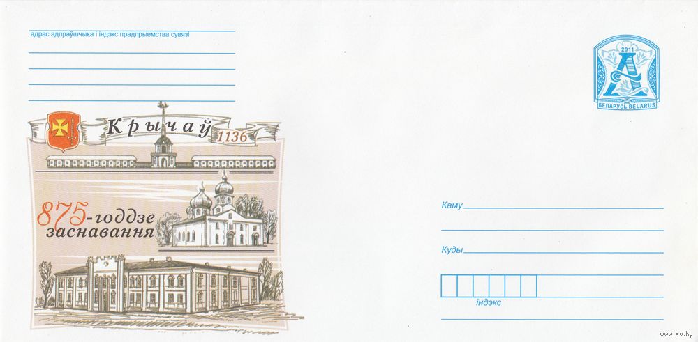 Беларусь 2011 Кричев 1136. 875-летие основания церковь Воскресенская. Кричевская судостроительная верфь. Дворец Потемкина (к4)