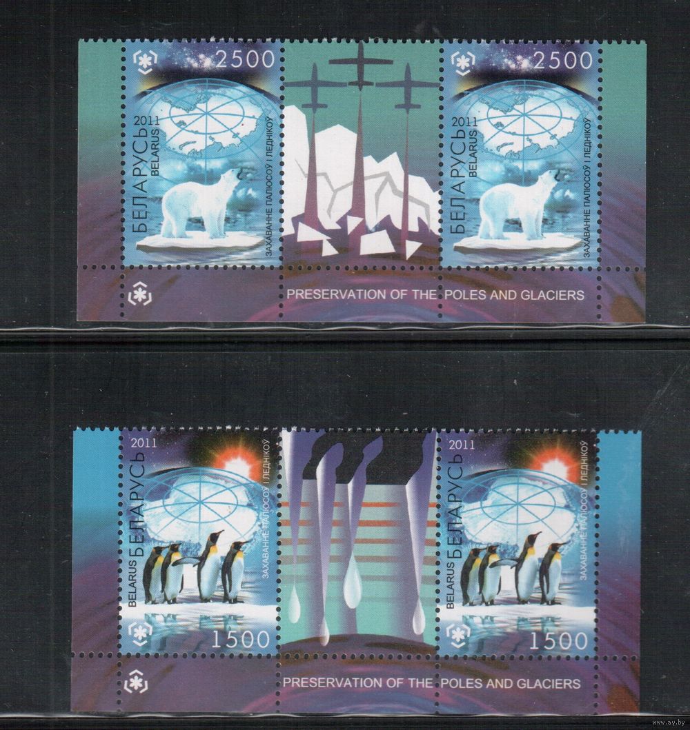Беларусь-2011,(Мих.847-848) ** , Фауна, Антарктида, с куп.