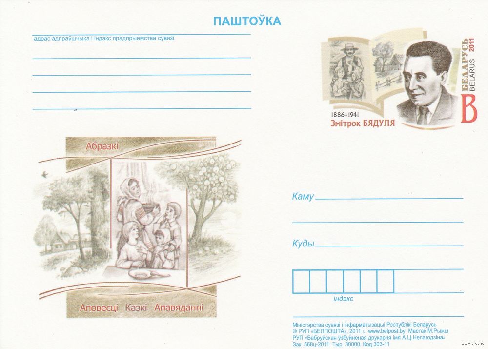 Беларусь 2011 ПК с ОМ 125 лет со днярождения Змитрока Бядули (алб)