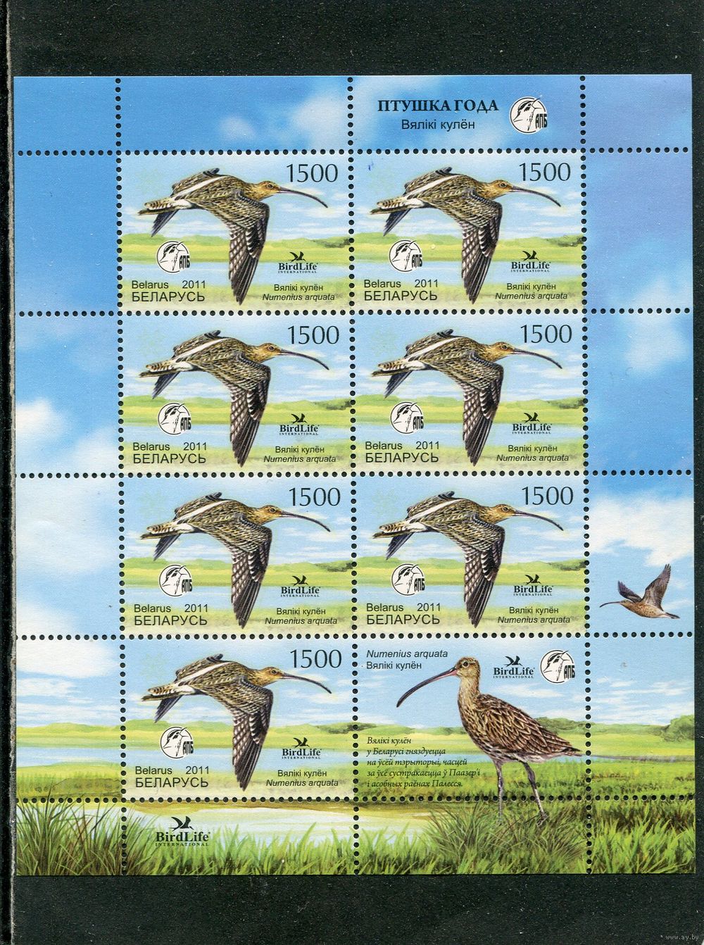 Беларусь 2011. Птица года. Большой кроншнеп. Малый лист