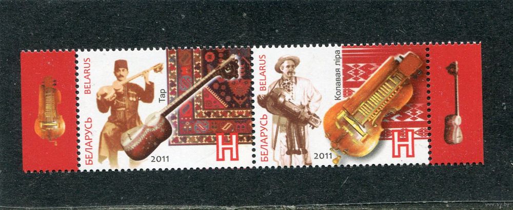 Беларусь 2011. Совместный выпуск с Азербайджаном. Музыкальные инструменты. Сцепка