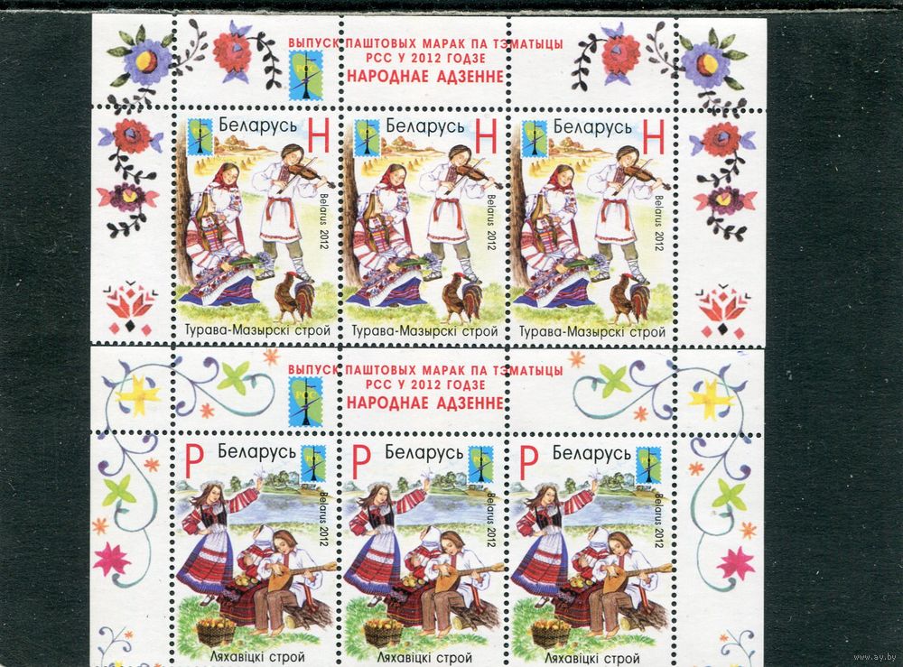 Беларусь 2012. Белорусская народная одежда, костюмы. Верхние сцепки листа