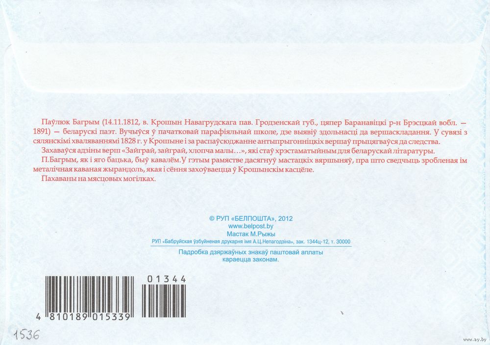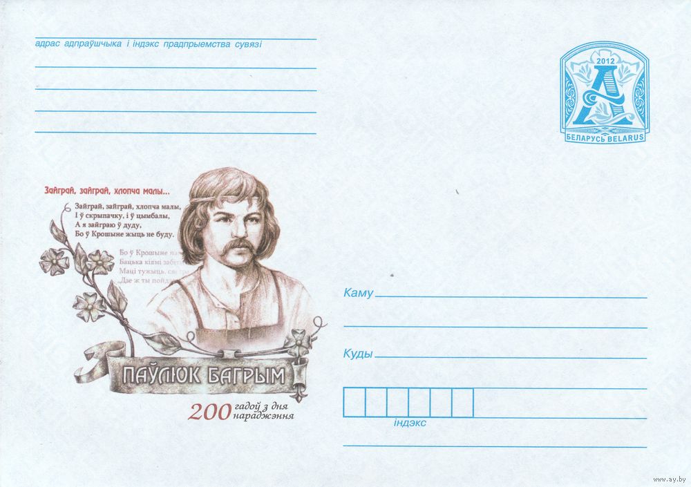 Беларусь 2012 Павлюк Багрим 200 лет со дня рождения Павел Иосифович Багрим, белорусский поэт (к4)