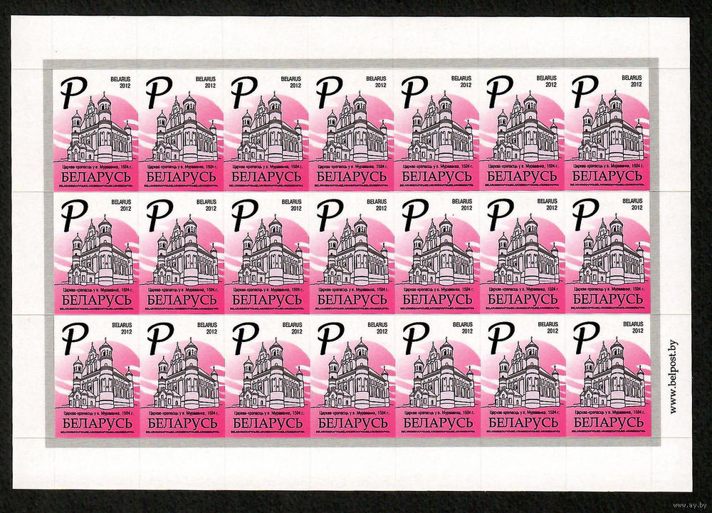 Беларусь. 2012. Стандарт. Церковь - крепость (Р) глянцевая бумага (без заказа) Лист